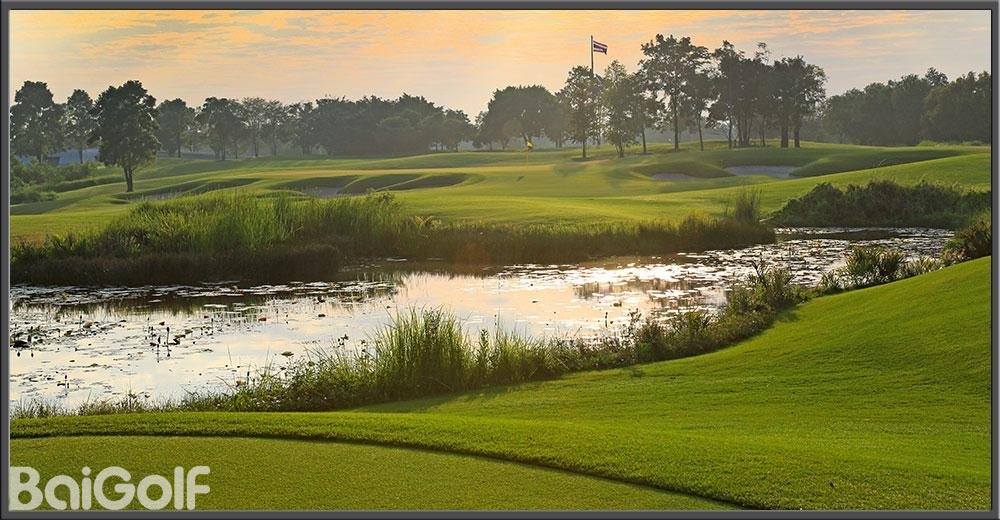 สนามนี้สร้างขึ้นบนพื้นที่แอ่งน้ำที่ถูกขุดและถมดินจนเกิดเป็นภูมิประเทศที่เป็นลูกคลื่น เดิมทีวางแผนให้มี 36 หลุม แต่ในที่สุดก็ได้พัฒนาเป็นสนามมาตรฐาน 18 หลุม ทำให้สนามนี้กว้างขวาง มีบรรยากาศที่เป็นธรรมชาติ และด้วยการออกแบบที่โดดเด่น เต็มไปด้วยกลยุทธ์และความท้าทาย จึงสมควรได้รับการยกย่องให้เป็นสนามกอล์ฟอันดับ 1 ของประเทศไทย